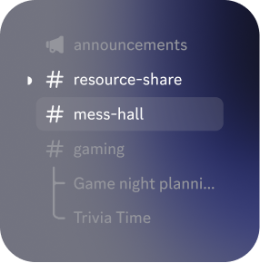 Discord servers help organize conversation into topic-based channels. Discuss that newest game release, share what you're up to, or talk about whatever — without clogging up a group chat.